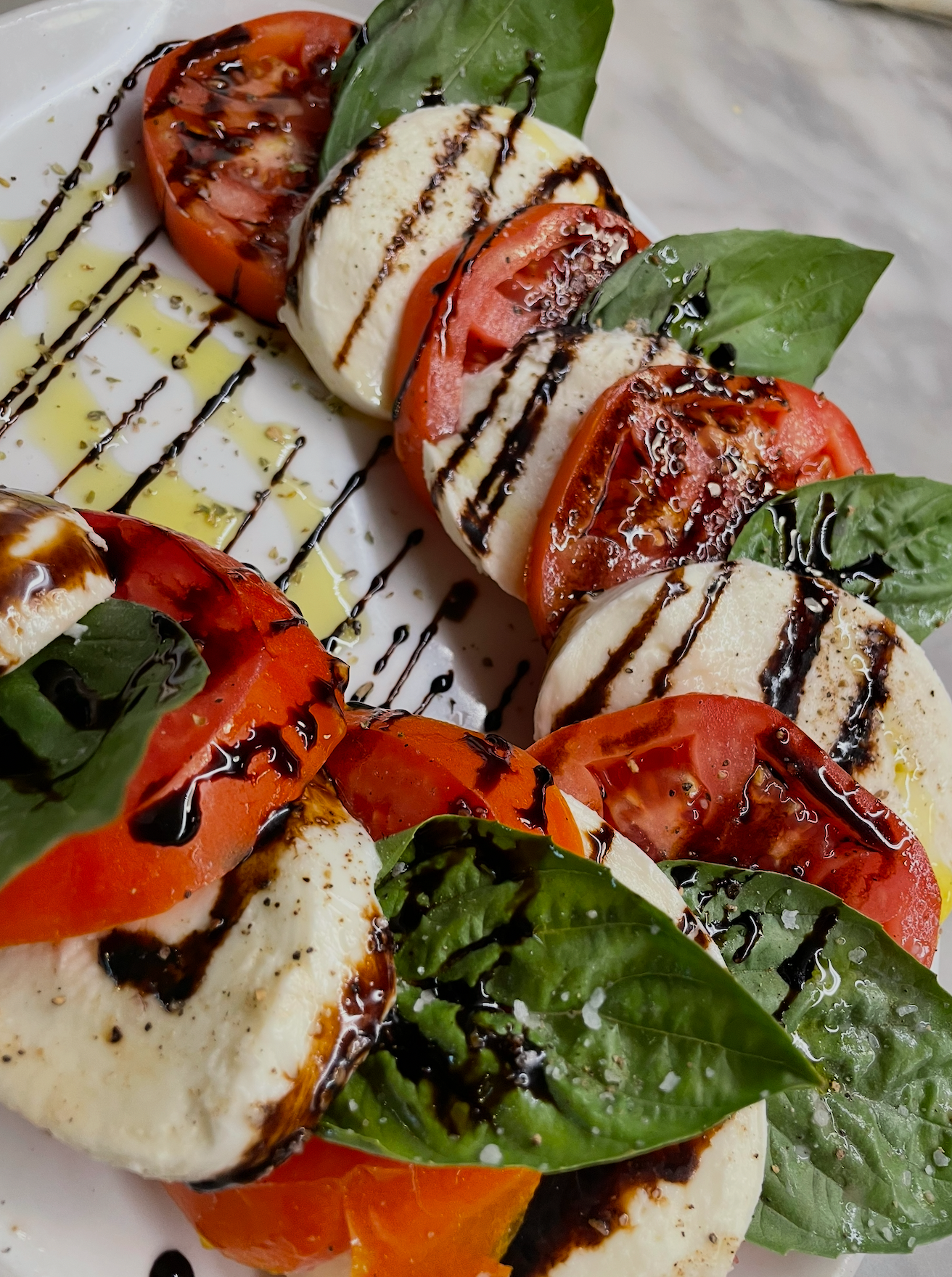 Fresh mozzarella, tomato, basil, balsamic reduction.